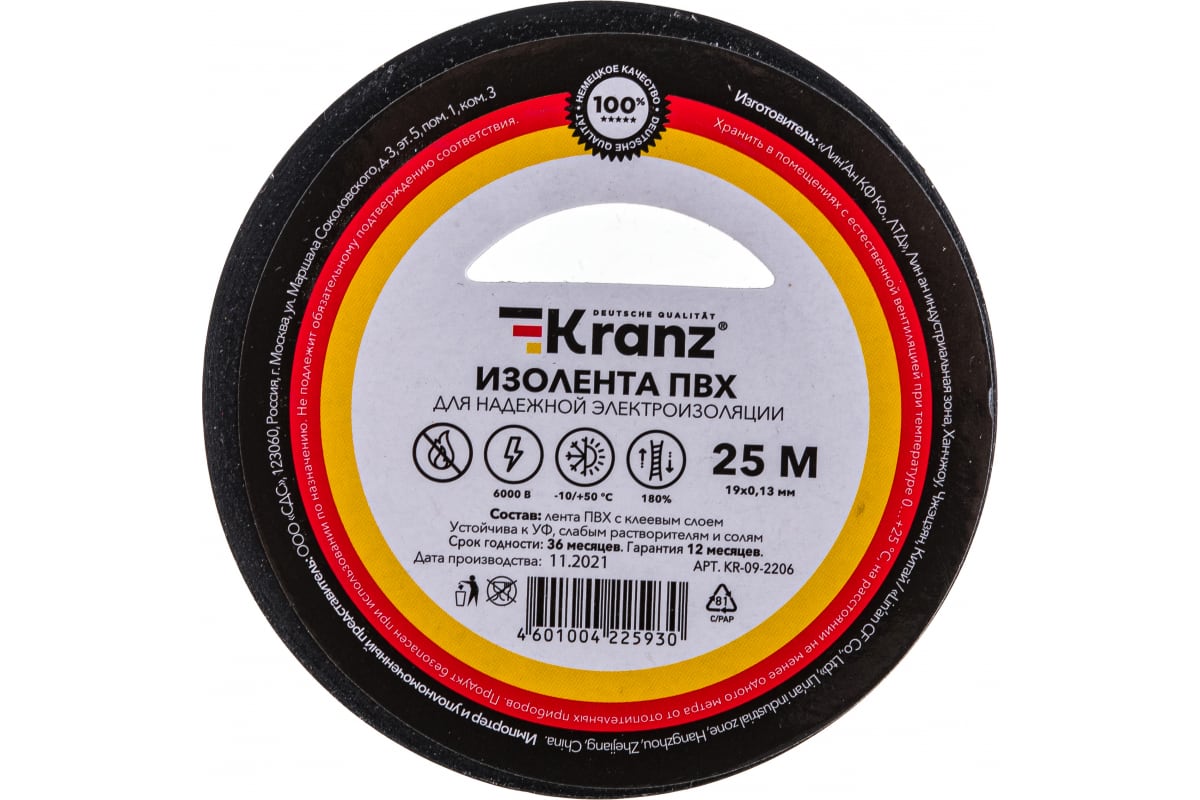 Изолента Kranz ПВХ 0.13х19мм 25м черный