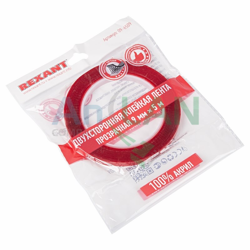 Двухсторонний скотч прозрачный 9мм 5м REXANT представляет собой клейкую с двух сторон пластичную ленту. Область его применения не имеет границ. Его используют как для внутренних, так и для наружных работ (в производстве, торговле, искусстве, быту и т.д.). Основой для производства такого скотча служат материалы всемирно известной компании 3M, отличающиеся от остальных сверхвысокой клейкостью и термостойкостью (выдерживает до +130℃). Он легко склеит предметы из самых разнообразных материалов, таких как, стекло, металл, пластмассу, а также загрунтованное дерево.