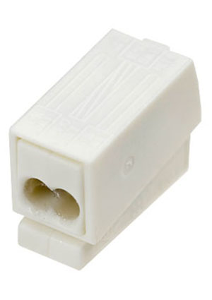 Плоскопружинный зажим для одножильных медных или алюминиевых проводников с монтажной стороны (потолок или стена)