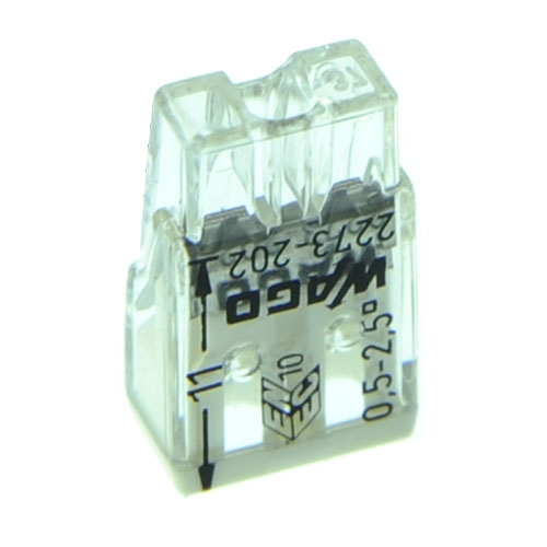 Клеммы WAGO 2273-202 предназначены для безопасного и быстрого соединения 2-х проводов между собой (одножильных, так и многожильных медных проводников (до 3-го класса гибкости)). Сечение соединяемых проводов от 0,5 до 2,5 мм2.