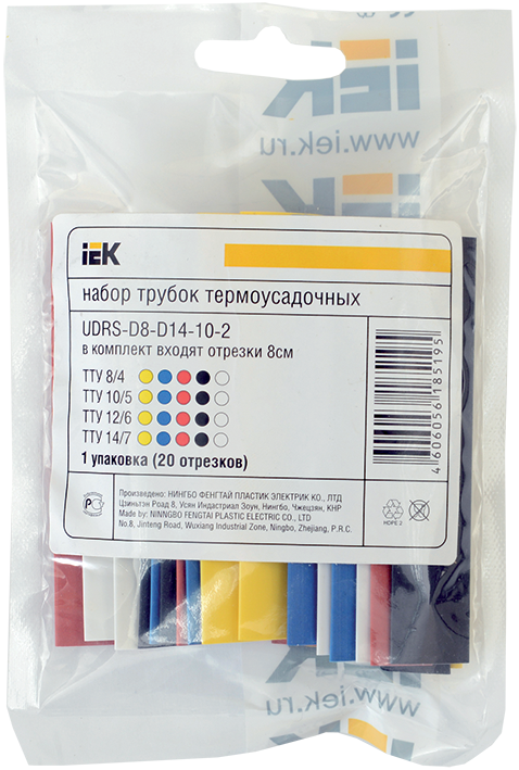 Набор термоусадочных трубок IEK ТТУ 2/1, 4/2, 6/3, 8/4 ЖЗ, С, К, Ч, Б (20х8см/упак)