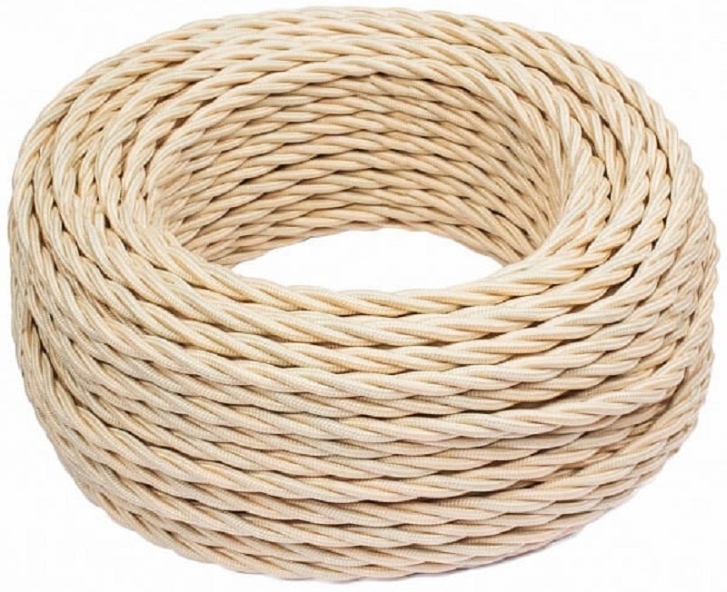 Витой провод обладает превосходными внешними качествами. Изготовлен из негорючего провода ( что безопасно для деревянного дома) Идеальное качество плетения, который не поддерживает горение. Удобен в монтаже. Активно используется при оформлении интерьеров в стиле классика, прованс, винтаж и лофт.