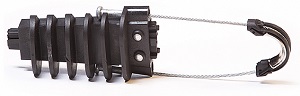 Натяжной зажим состоит из пластикового корпуса с зажимными невыпадающими клиньями и хомута из стального нержавеющего троса. Высокопрочный пластик, стабилизированный к воздействию ультрафиолетовых лучей обеспечивает надежное крепление в любых климатических условиях.