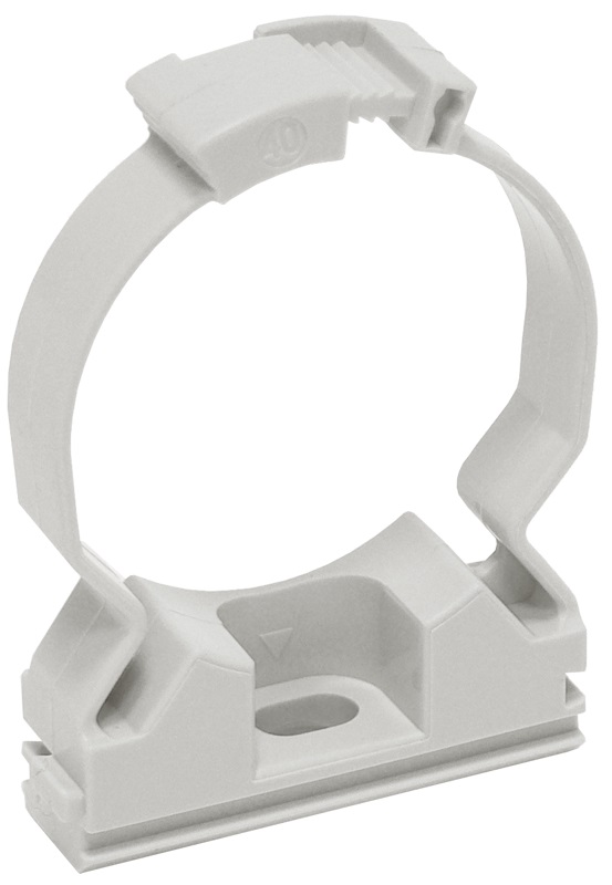 Хомутный держатель CFC российского производства предназначен для крепления гладкой жесткой и гофрированной трубы. Труба надежно крепится благодаря наличию защелки. Конструкция позволяет соединять между собой несколько держателей.