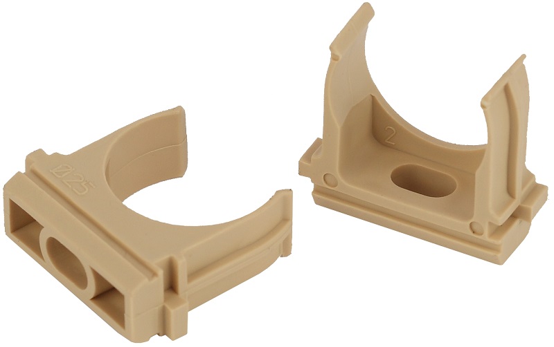 Крепеж для гофры, гофротрубы (клипса для гофротрубы), труб ПВХ и кабеля изготовлен из качественных материалов по передовым технологиям пластикового литья. Оптимальная форма с грамотно расположенными ребрами жесткости обеспечивают надежный захват трубы и достаточную жесткость удержания в течении длительного времени. Качественный пластик и прочностные ребра жесткости не дают ломаться зажиму на холоде и слабнуть на жаре. Зажимы противостоят ультрафиолетовым излучениям, солям, кислой среде и алкалинам.