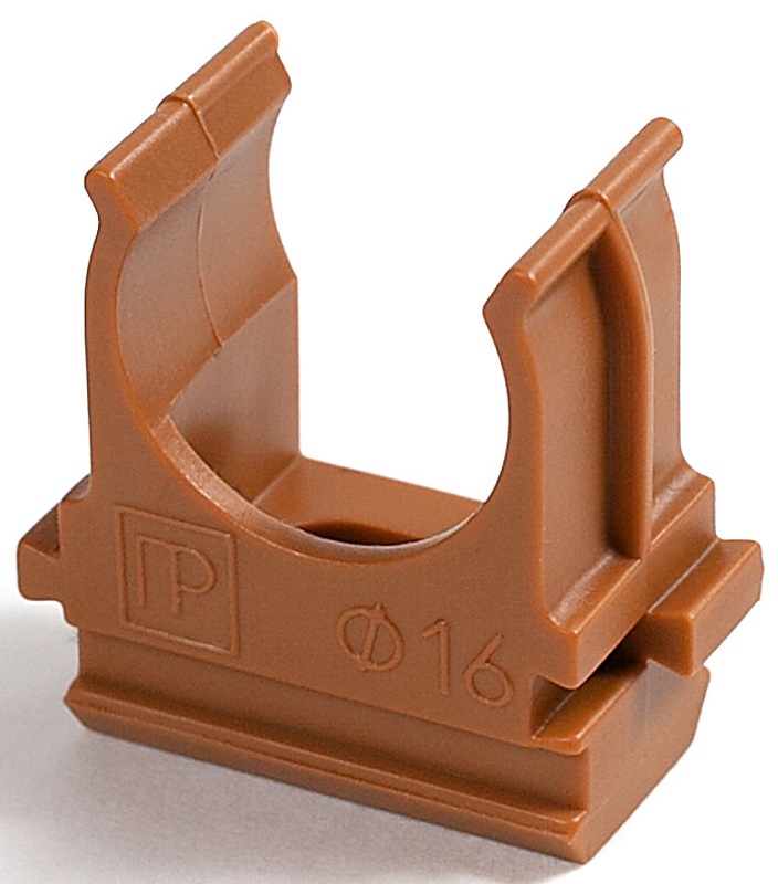 Предназначена для крепления гладких труб ПВХ или гофрированных труб одного диаметра к поверхности стен, потолков, полов или перегородок. Для монтажа предусмотрено технологическое отверстие под дюбель или саморез. Для удобства блочного монтажа состыковываются друг с другом с помощью специальных фиксаторов типа «ласточкин хвост».