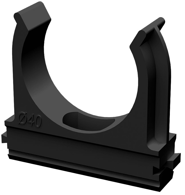 Предназначена для крепления гладких труб ПВХ или гофрированных труб одного диаметра к поверхности стен, потолков, полов или перегородок. Для монтажа предусмотрено технологическое отверстие под дюбель или саморез. Для удобства блочного монтажа состыковываются друг с другом с помощью специальных фиксаторов типа «ласточкин хвост».