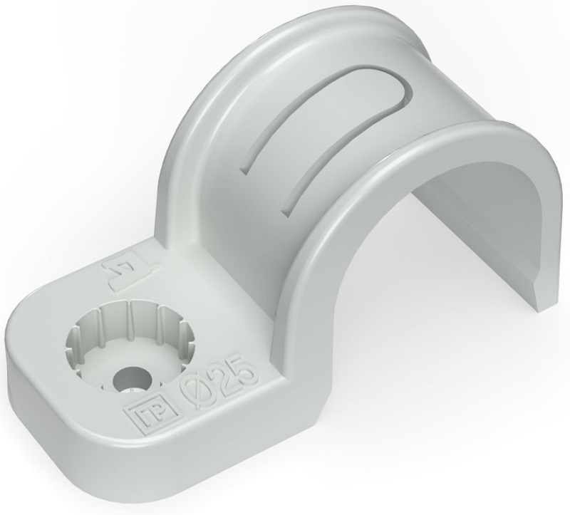 Крепёж-скоба предназначена для монтажа проводки в гофрированных и гладких трубах, нагревательных труб системы "теплый пол" и прочих работ по прокладке инженерных сетей на горизонтальных и вертикальных поверхностях. Подходит как для прямого монтажа, так и для классического с применением дюбелей и саморезов. Благодаря пластичному язычку с выступом достигается сопротивление проскальзыванию гофрированных труб, дополнительная ступенька удерживает в скобе смонтированную трубу.