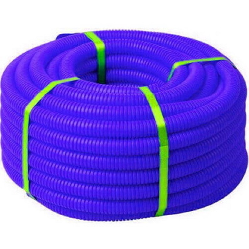 Гофрированные трубы из самозатухающего полипропилена не распространяют горение. Материал устойчив к экстремальным температурным воздействиям, а высокая ударная прочность и эластичность позволяют применять трубы в монолитном бетоностроении. В серии выпускаются легкие, тяжелые и сверхтяжелые трубы, отличающиеся по весу, уровню ударопрочности и устойчивости к нагрузкам. Трубы применяются для прокладки электрических, телефонных, компьютерных кабелей. Специальная протяжка, входящая в комплект, облегчает прокладку кабеля во внутреннем пространстве трубы. Диаметр трубы - 32 мм. Цвет - синий.