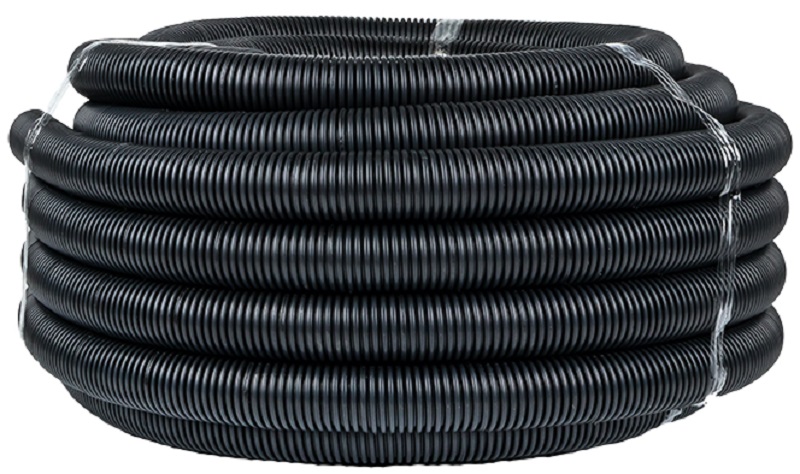 Гофра ПВХ FRHF трудногорючая EKF-Plast Д=50 легкая с протяжкой черный (20м) картинка