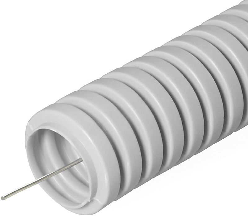 Гофра ПВХ Промрукав Строитель Д=20 легкая с протяжкой серый (100м)