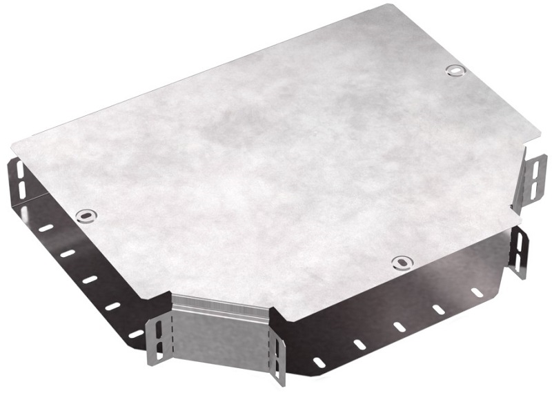 Аксессуары для лотков Промрукав подходят для соединения между собой лотков серии «Стандарт» в любой комбинации. Аксессуары изготавливают из оцинкованной ленты по методу Сендзимира, с толщиной цинкового покрытия от 19 до 23 мкм. Т-образный ответвитель предназначен для разветвления кабельных трасс в горизонтальном направлении,для перфорированных и глухих лотков. В комплект входит крышка.
