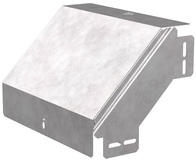 Аксессуары для лотков Промрукав подходят для соединения между собой лотков серии «Стандарт» в любой комбинации. Аксессуары изготавливают из оцинкованной ленты по методу Сендзимира, с толщиной цинкового покрытия от 19 до 23 мкм. Угол вертикальный внешний 90 градусов предназначен для спуска кабельных трасс на 90 градусов, для перфорированных и глухих лотков. В комплект входит крышка.