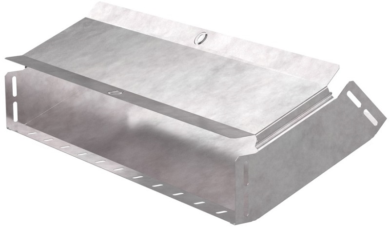 Аксессуары для лотков Промрукав подходят для соединения между собой лотков серии «Стандарт» в любой комбинации. Аксессуары изготавливают из оцинкованной ленты по методу Сендзимира, с толщиной цинкового покрытия от 19 до 23 мкм. Угол вертикальный внешний 45 градусов предназначен для спуска кабельных трасс на 45 градусов, для перфорированных и глухих лотков. В комплект входит крышка.