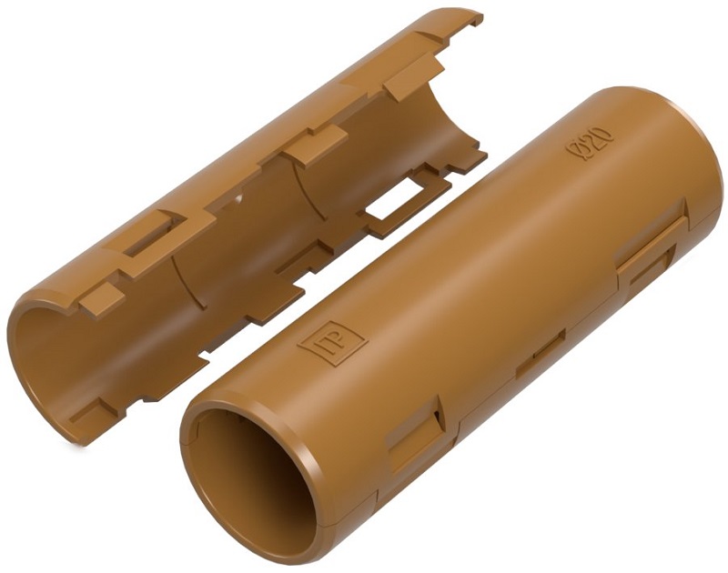 Муфта разборная позволяет соединять гофрированные и гладкие трубы различных типоразмеров без использования специальных инструментов, как при прокладке проложенной кабеленесущей трассе вновь, так и по ранее смонтированной системе труб, в том числе с переходом с гофрированной трубы на гладкую одного типоразмера.
