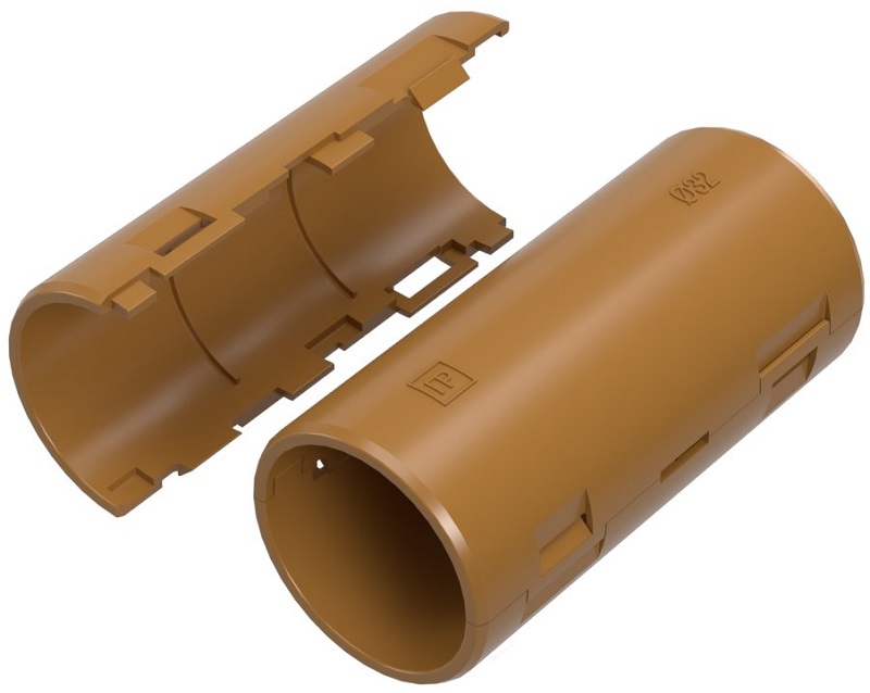 Муфта разборная позволяет соединять гофрированные и гладкие трубы различных типоразмеров без использования специальных инструментов, как при прокладке проложенной кабеленесущей трассе вновь, так и по ранее смонтированной системе труб, в том числе с переходом с гофрированной трубы на гладкую одного типоразмера.