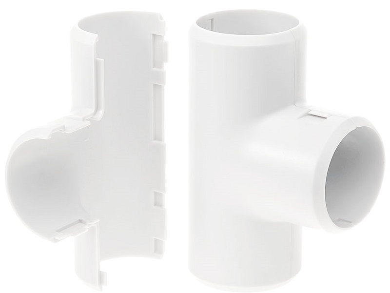 Предназначен для соединения гофрированных труб или гладких труб из пластика, образуя Т-образное ответвление, что позволяет придать более эстетичный внешний вид местам соединения. Состоит из двух частей соединяющихся друг с другом. Благодаря разъёмному корпусу, имеет возможность установки на уже смонтированную трассу.