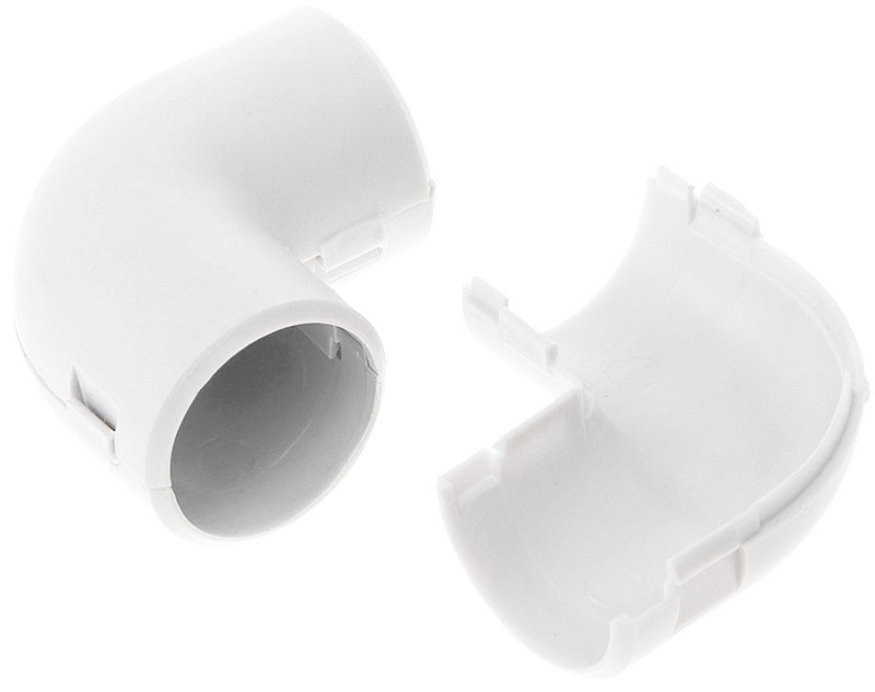 Предназначен для соединения гофрированных труб или гладких труб из пластика под углом 90 °С, что позволяет придать более эстетичный внешний вид местам соединения. Благодаря разъёмному корпусу, имеет возможность установки на уже смонтированную трассу.