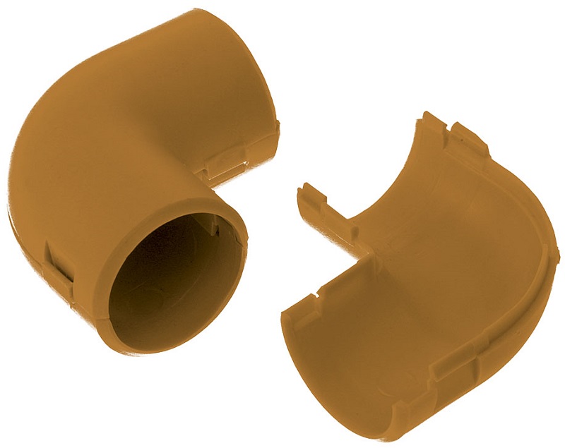 Предназначен для соединения гофрированных труб или гладких труб из пластика под углом 90 °С, что позволяет придать более эстетичный внешний вид местам соединения. Благодаря разъёмному корпусу, имеет возможность установки на уже смонтированную трассу.