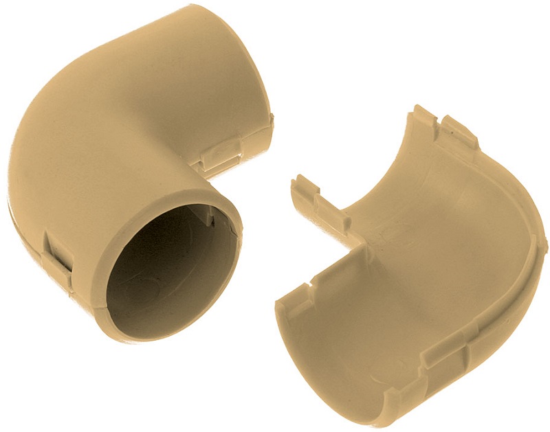 Предназначен для соединения гофрированных труб или гладких труб из пластика под углом 90 °С, что позволяет придать более эстетичный внешний вид местам соединения. Благодаря разъёмному корпусу, имеет возможность установки на уже смонтированную трассу.