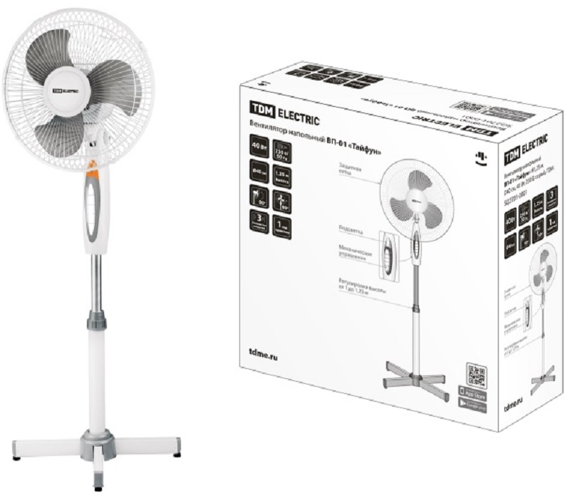 Вентилятор напольный TDM "Тайфун" ВП-01 белый картинка
