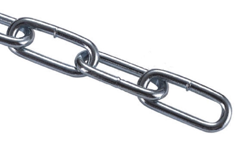 Для широкого применения в различных устройствах, элементах конструкций. Цепь хорошо работает в качестве растяжки. Не применяется для подъема груза, не выдерживает ударной нагрузки. Конструктивно цепь состоит из стальных звеньев овальной формы, соединенных между собой.