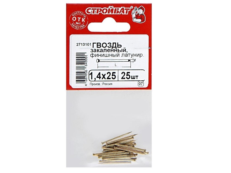 Гвозди финишные латунированные закаленные Стройбат 1,4х25(25 шт)