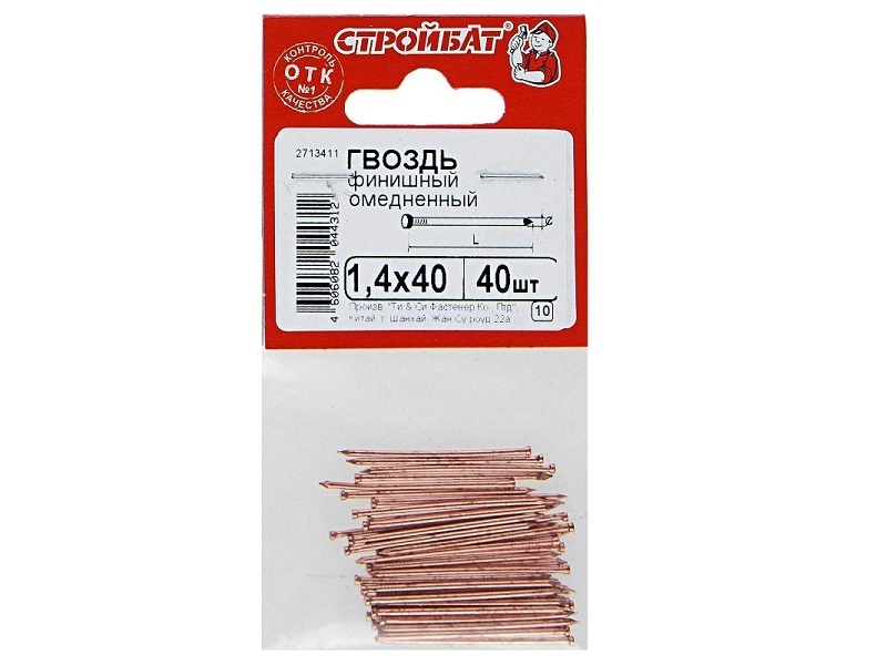 Гвозди финишные омеднененные Стройбат 1,4х40 (40 шт)