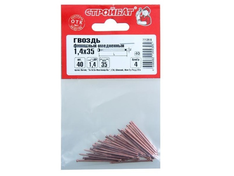 Гвозди финишные омедненные Стройбат 1,4х35 (40 шт)  картинка