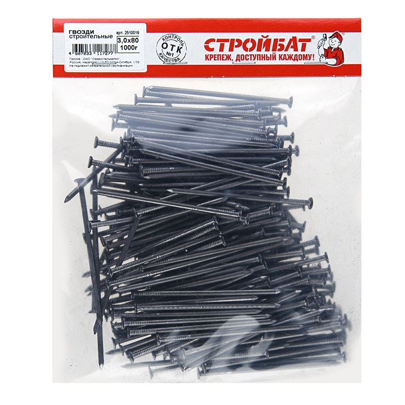 Гвозди строительные Стройбат 3,0х80 (1,0 кг)
