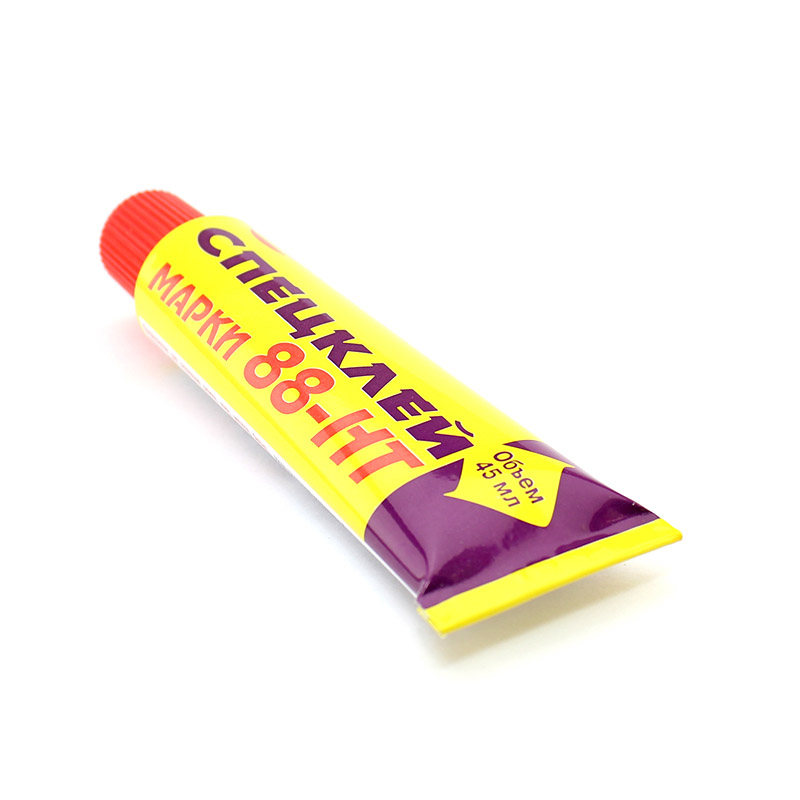 Клей НБХ 88-НТ, 45 мл предназначен для склеивания резины, кожи, металла, бетона, керамики, дерева, тканевых и полимерных материалов в различных сочетаниях между собой. Склеенные изделия могут эксплуатироваться при температурах от -40 °С до +50 °С. Спецклей марки 88-НТ - это контактный клей, который после нанесения на склеиваемые поверхности и выдержки в течение нескольких минут сохраняет липкость, а после прижатия склеиваемых поверхностей уже имеет начальную прочность склейки. Благодаря этому свойству со спецклеем марки 88-НТ быстро и удобно работать.