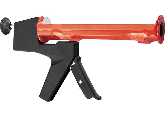 Имеет полуоткрытый металлический корпус и гладкий шток. Пластмассовая рукоятка смещена к центру корпуса, создавая противовес, снижает нагрузку на руку при работе. Применяется для выдавливания герметика.