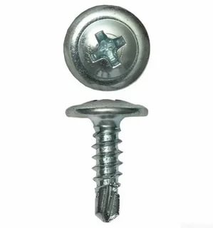 Саморезы с пресс-шайбой и сверлом для листового металла изготовлены из стального прутка с высоким содержанием углерода. Контроль за геометрией самореза начинается с калибровки прутка и заканчивается тщательной проверкой размеров готового изделия. Нормативная твердость стали достигается термической обработкой. Поверхностная твердость 560-720HV, твердость в сердцевине 240-425HV. Саморезы легко вкручиваются обычным шуруповертом или отверткой с крестообразным шлицем PH2 (DIN). Предварительное сверление в скрепляемых материалах не требуется. Геометрические размеры: диаметр пресс-шайбы (W) - 10.5-11.0мм, диаметр головки (Dk) - 6.5-7.0мм, диаметр резьбы (D) - 4.04-4.22мм, диаметр сверла (dp) - 3.1-3.2мм, длина сверла (ds) - 3.7-3.8мм, шаг резьбы (Pi) - 1.41мм.