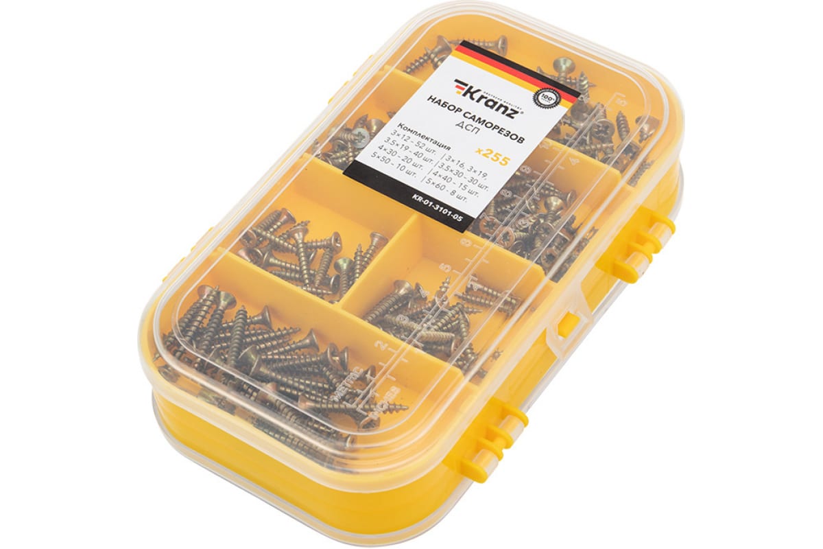 Саморезы универсальные желтые для ДСП Kranz 255шт