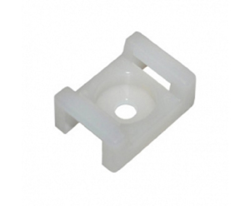 позволяет с помощью всего одного винта или самореза прикрепить пучки проводов, стянутые хомутом, к абсолютно любой поверхности. Тем самым произвести как временную, так и постоянную организацию кабельной проводки. Плюс к этому площадку для крепления стяжки используют также и для закрепления иных нетяжёлых предметов. Выполнена площадка из пластика белого цвета и оснащена специальным отверстием под хомут.