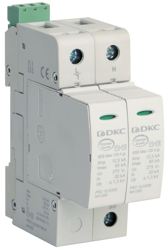 УЗИП класса I+II на основе газонаполненных разрядников и оксидно-цинковых варисторов рекомендуется к применению в любых зданиях и сооружениях, подверженных риску удара молнии. Устанавливается на уровне главного распределительного щита.