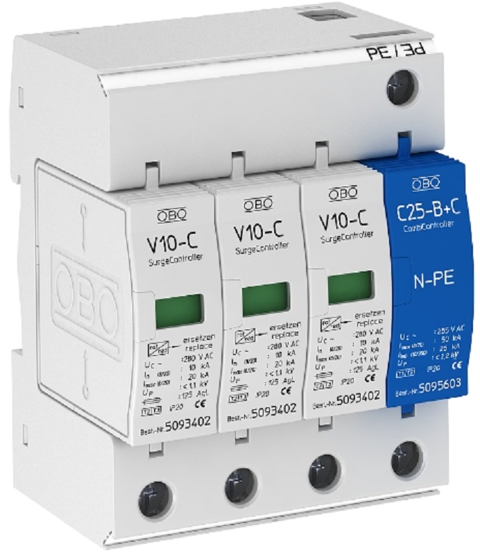Ограничитель импульсных напряжений УЗИП OBO SurgeController 4п L1-L2-L3-N-PE классII+III 10кА