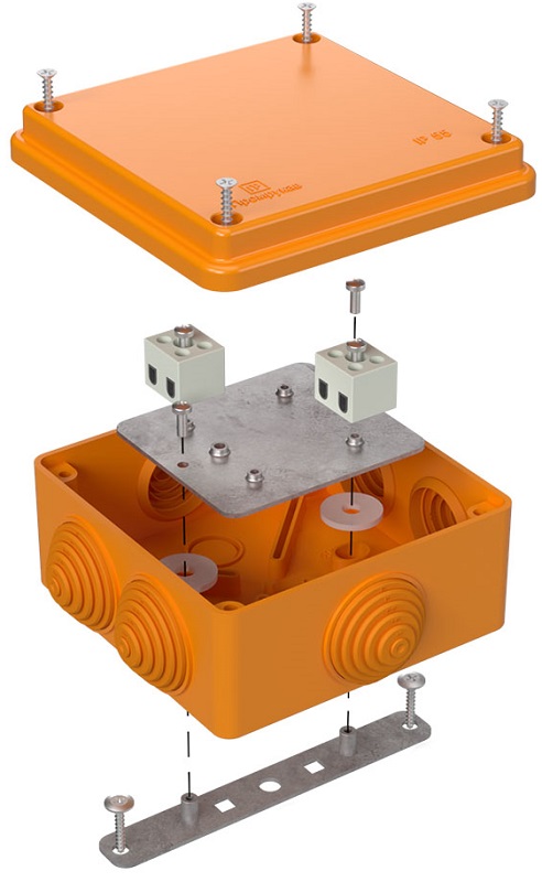 Коробка огнестойкая Промрукав 100x100x50мм под винт 4x6мм IP55 оранжевый