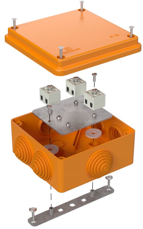 Коробка огнестойкая Промрукав 100x100x50мм под винт 6x2,5мм IP55 оранжевый