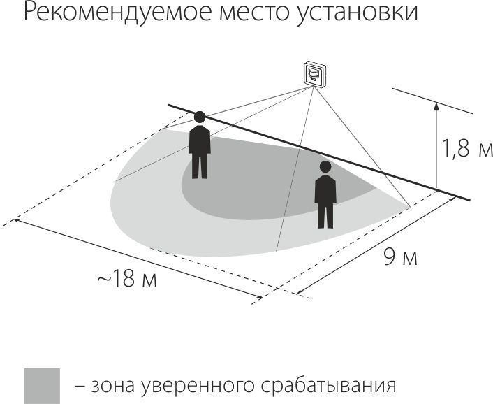 - Возможность довольно точной регулировки дальности и угла обнаружения движущихся объектов;