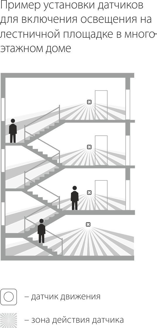 Детектор перемещения или датчик движения автоматически включает/выключает освещение в помещении в зависимости от интенсивности естественного потока света и/или присутствия людей. Принцип его действия основан на регистрации изменения инфракрасного (ИК) излучения, вызванного перемещением или деятельностью человека.