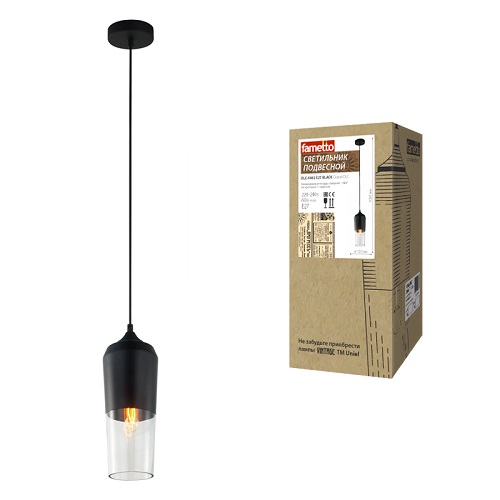 Светильник подвесной Vintage Fametto DLC-V402 220В E27 Черный / Прозрачное стекло