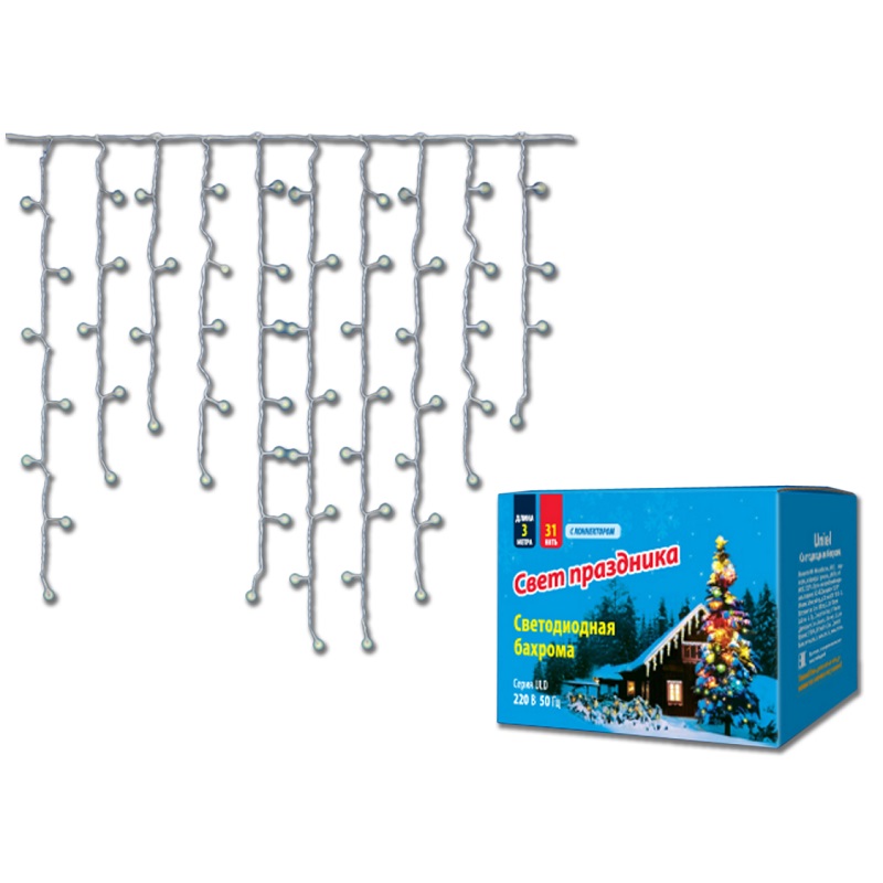 Гирлянда светодиодная "Бахрома" Uniel ULD-B3010-200/DTA Белый свет IP20 3м, с контроллером