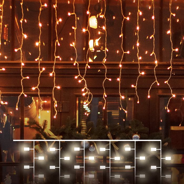 Гирлянда в стиле "Занавес" это прекрасное решение для составления теплой атмосферы дома в праздничные дни.