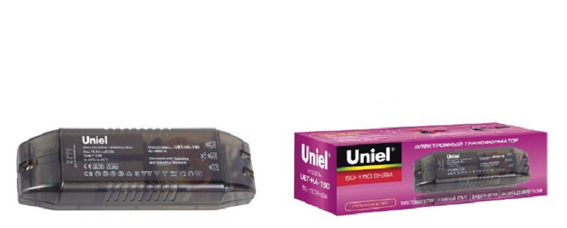 Электронные трансформаторы UNIEL подойдут для обеспечения работы галогенных ламп и для питания ламп с рабочим напряжением 12 В.Что бы обеспечить максимум надежности, трансформаторы UNIEL защищены от короткого замыкания.