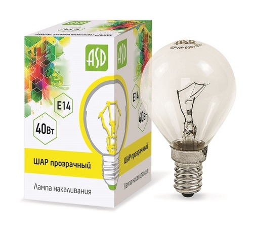 Лампы накаливания ASD это оптимальное решение для организации освещения в бытовых и жилых зонах. Лампочка изготовлена с цоколем Е14 и подходит для не глубоких плафонов с узким патроном.