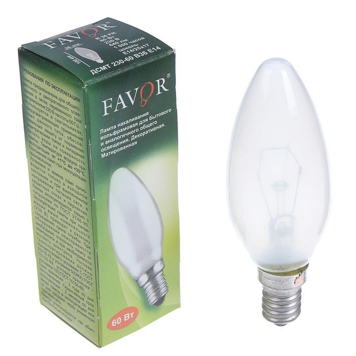 Лампы накаливания Favor это оптимальное решение для организации освещения в жилых и обеденных зонах. Лампочка изготовлена с цоколем Е27 и подходит для не глубоких или открытых плафонов со стандартным патроном.