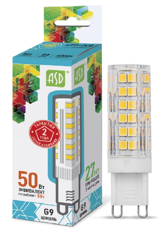 Лампа светодиодная ASD Standart JC Капсула G9 220В 5Вт 450Лм 4000К 16х61мм