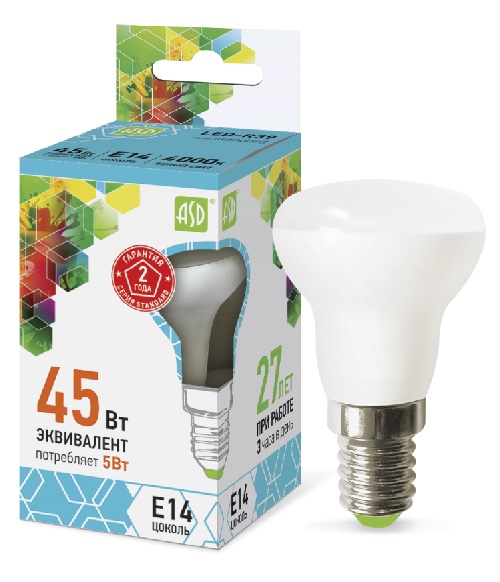 Лампа светодиодная ASD Standart R39 Спот E14 220В 5Вт 450Лм 4000К 39х68мм