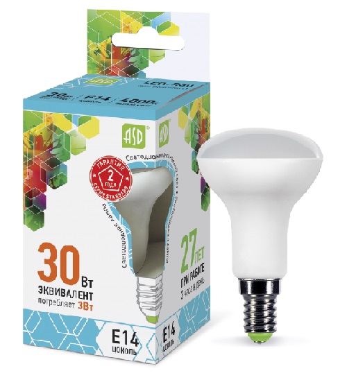 Серия ламп Standart от ASD это лампы с колбой R50 более известные как "зеркальные" или "рефлекторные", данные лампы